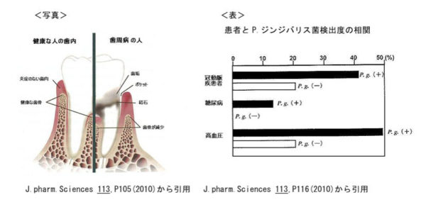 分子生物学的手法の大変な進歩で動脈硬化プラーク、動脈瘤、心臓弁、冠動脈などの循環器系疾患の患者組織中から Porphyromonas gingivalis(P.gingivalis ジンジバリス菌)の DNAが検出されることからです。